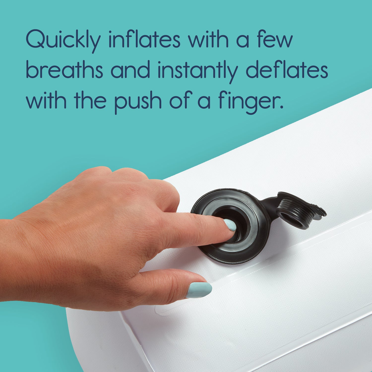 Quickly inflates with a few breaths and instantly deflates with the push of a finger.