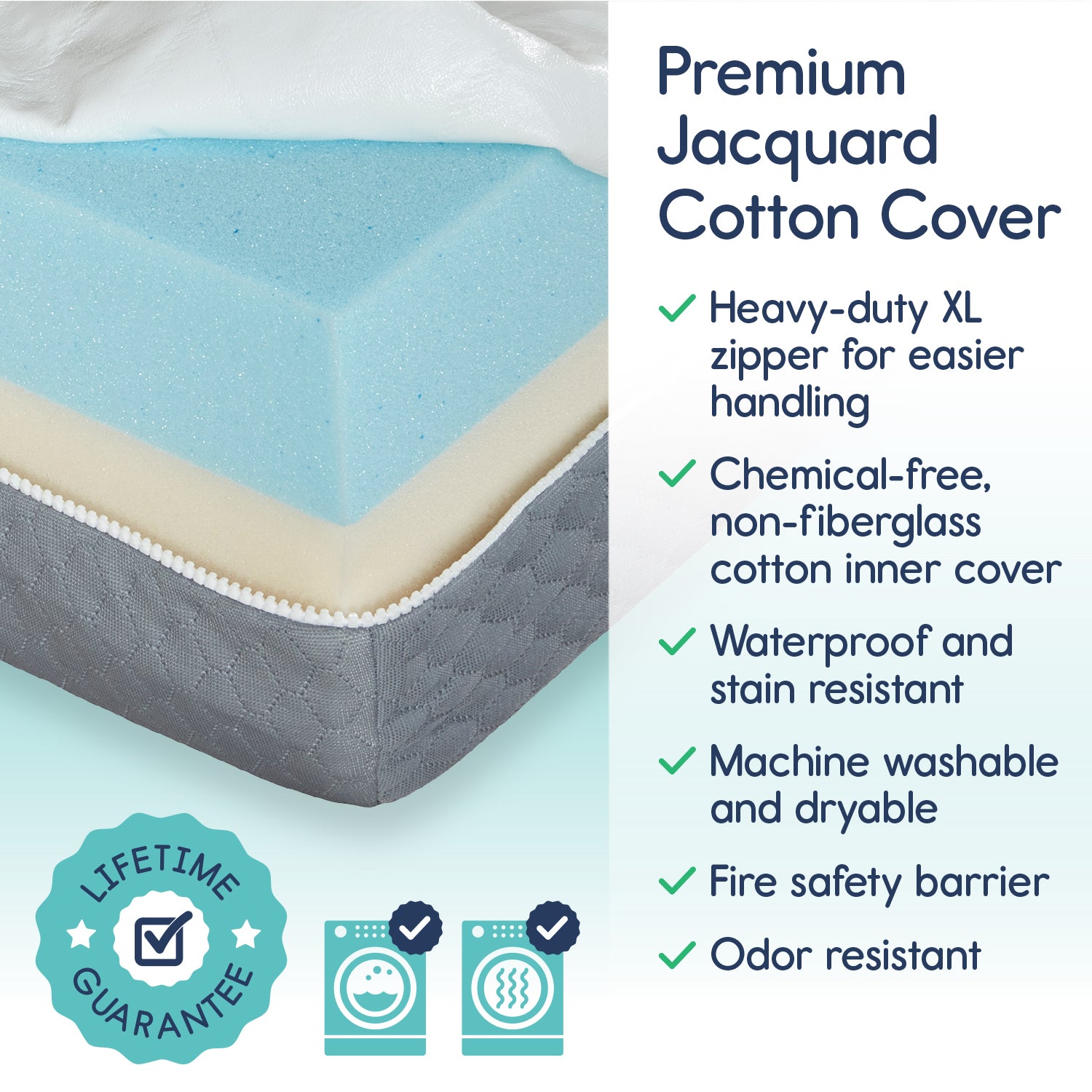 - Fiberglass-free inner cotton cover