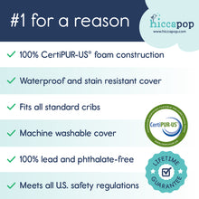 GROWS WITH YOUR LITTLE ONE: Designed to meet a growing baby’s needs, this dual-sided mattress features a firm infant side for safety and a plush, CertiPUR-US high-density memory foam side for toddlers. UNIVERSAL FIT: Fits all standard cribs (52”x27.5”x6”) with rounded corners and superior edge support for a snug fit. PREMIUM COMFORT: Extra-thick 6" design with high-density foam for support and breathability. WATERPROOF & EASY TO CLEAN: Jacquard cover resists liquids and stains, removable for machine washing. SAFETY CERTIFIED: Exceeds US safety standards, CertiPUR-US certified for foam and durability. -