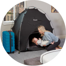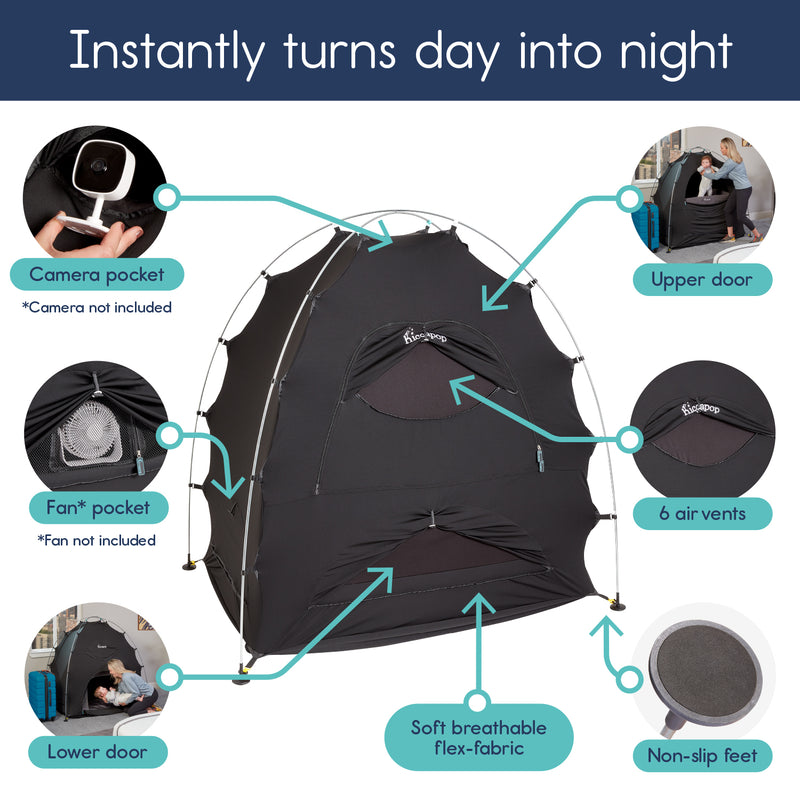 Sharing a Room with Your Little One – Problem Solved: Our sleep pod provides a safe, comfortable, dark sleep pod for kids while providing privacy for you. The travel blackout tent turns a bright room into a sleep oasis.