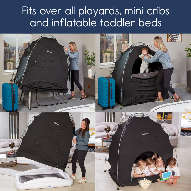 With 90% light blockage, the universal blackout tent provides a cozy dark space for naptime and privacy for room-sharing.