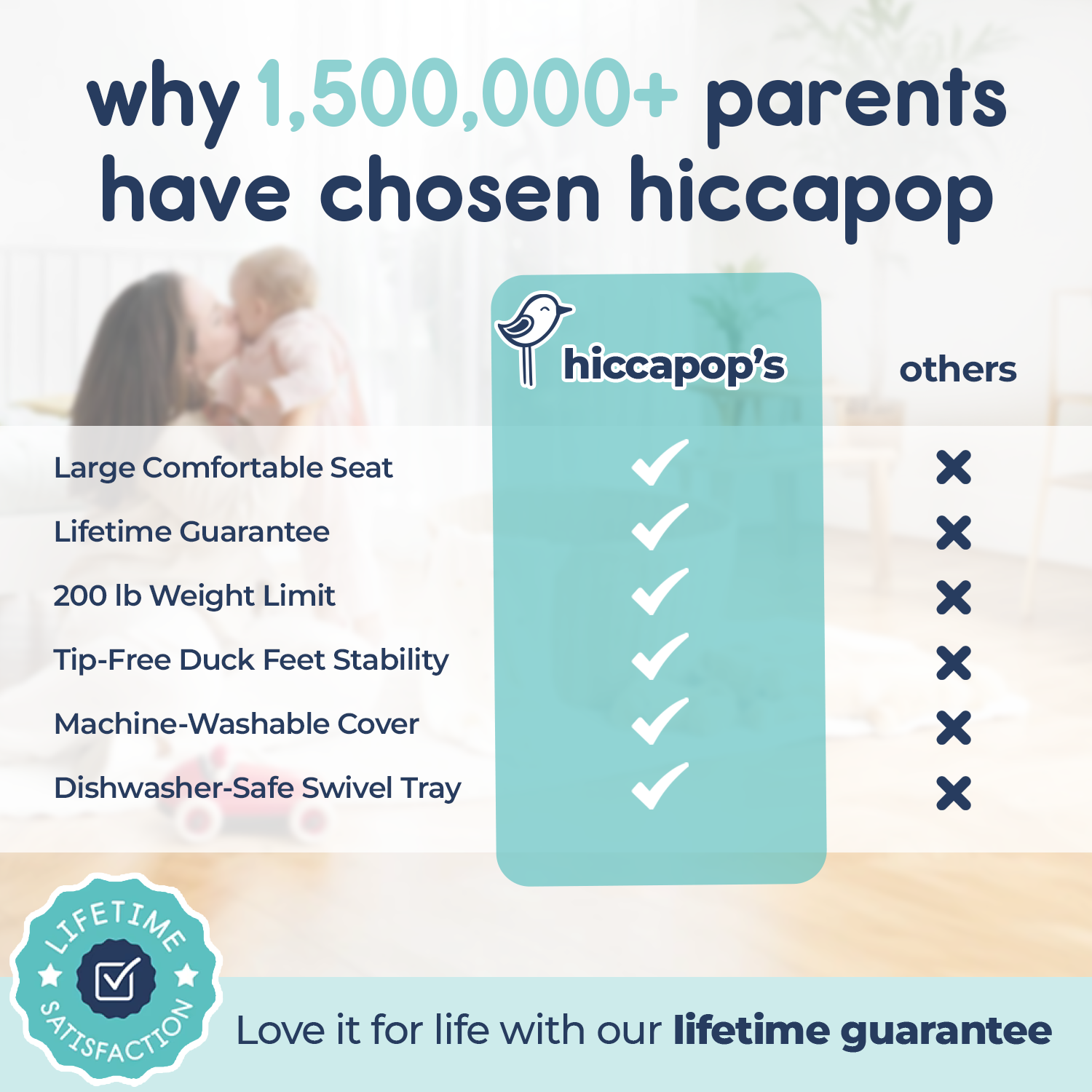 Our newly designed dishwasher safe tray provides more usable surface for meals, drawing and fun!